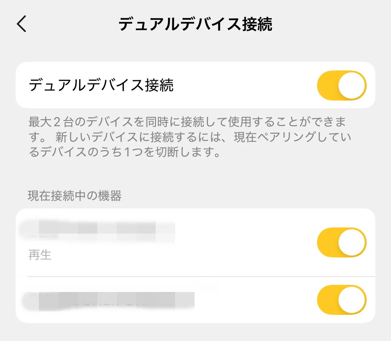 ▼アプリからデュアルデバイス接続をオン