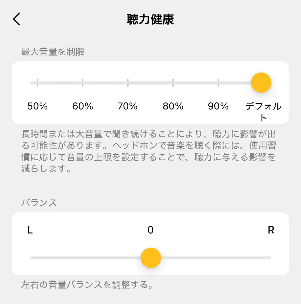 ほかにも、メディア音量制限、低消費電力モード、イヤホンを探すといった便利機能も用意されています。細かな使い勝手まで配慮されており、ユーザー目線で丁寧に作り込まれていると感じました。