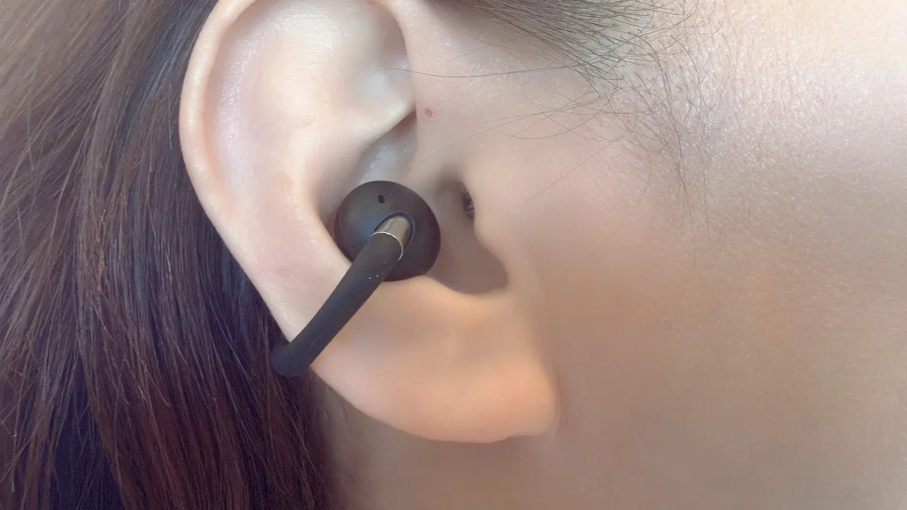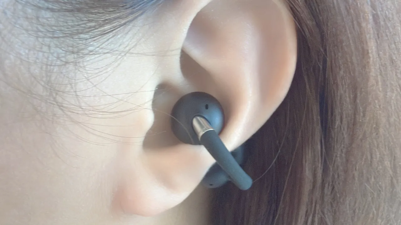 イヤーカフ型イヤホンは、挟み込みが強すぎて耳が痛くなったり、逆に緩すぎてズレやすかったりしますが、EarFun Clip 2はそのバランスが比較的うまく取れている印象です。