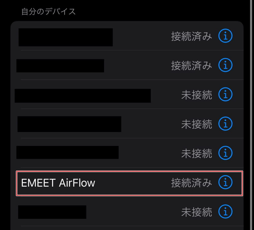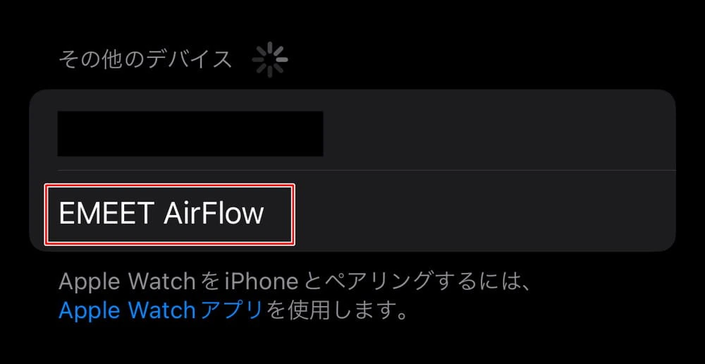 デバイス側で "EMEET AirFlow" が表示されるので、選択することで接続(ペアリング)が完了する。