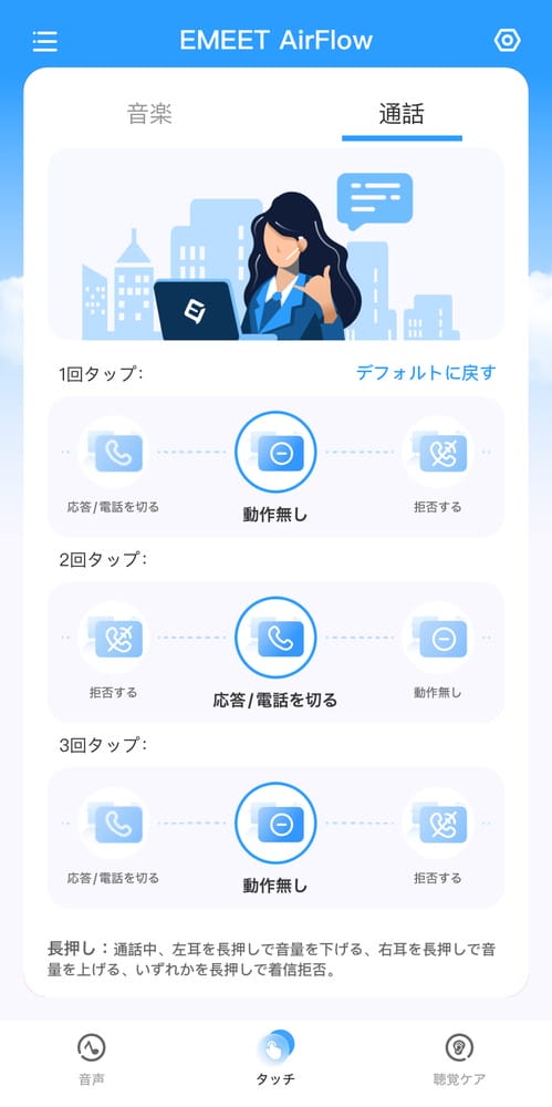 ▼イヤホンタップ時に利用できる機能を自由にカスタマイズ可能。
