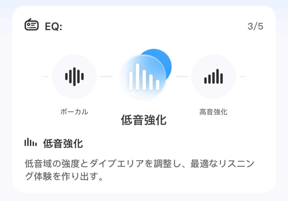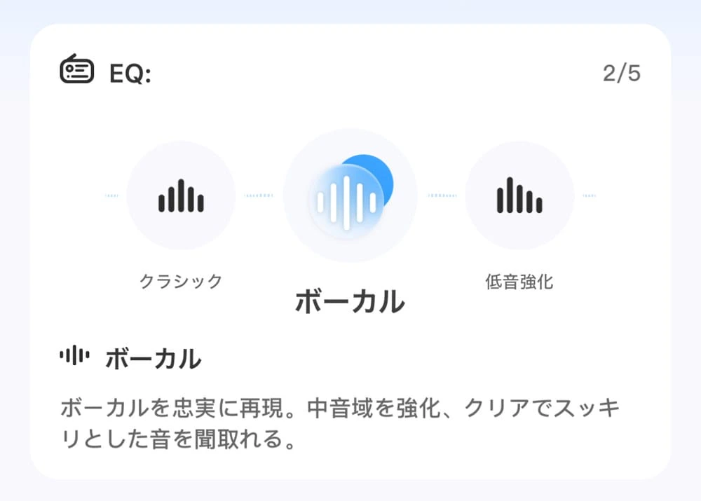 ▼イコライザープリセットが用意されており、好みに応じてサウンドの質を切り替えることが可能。