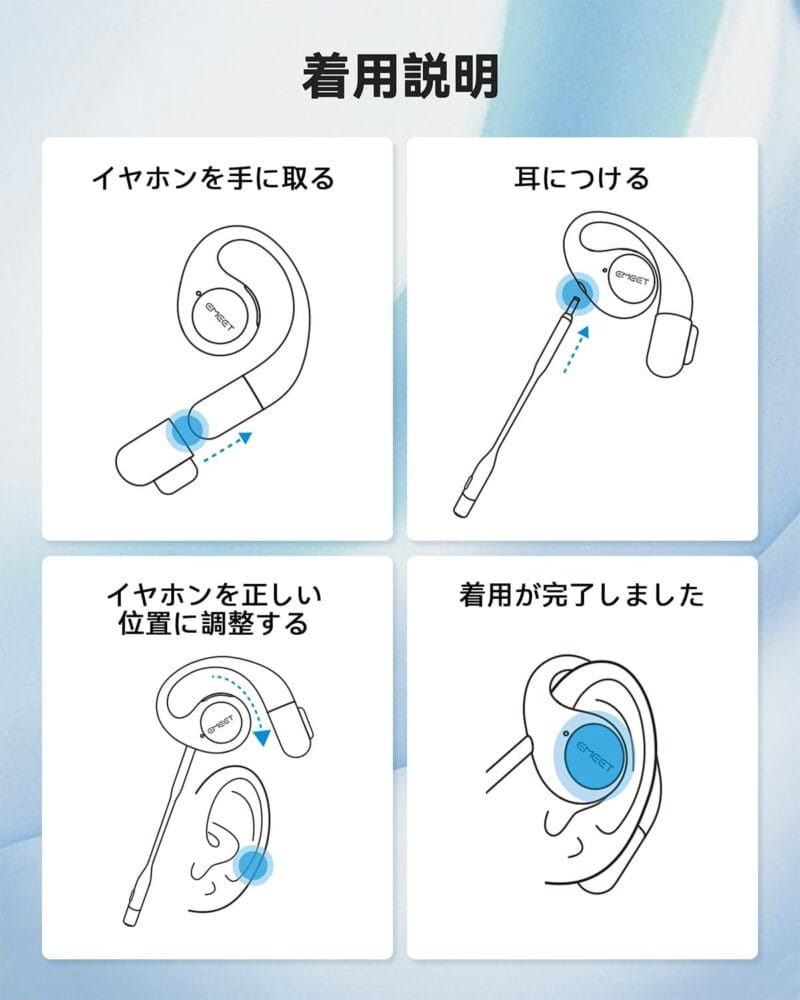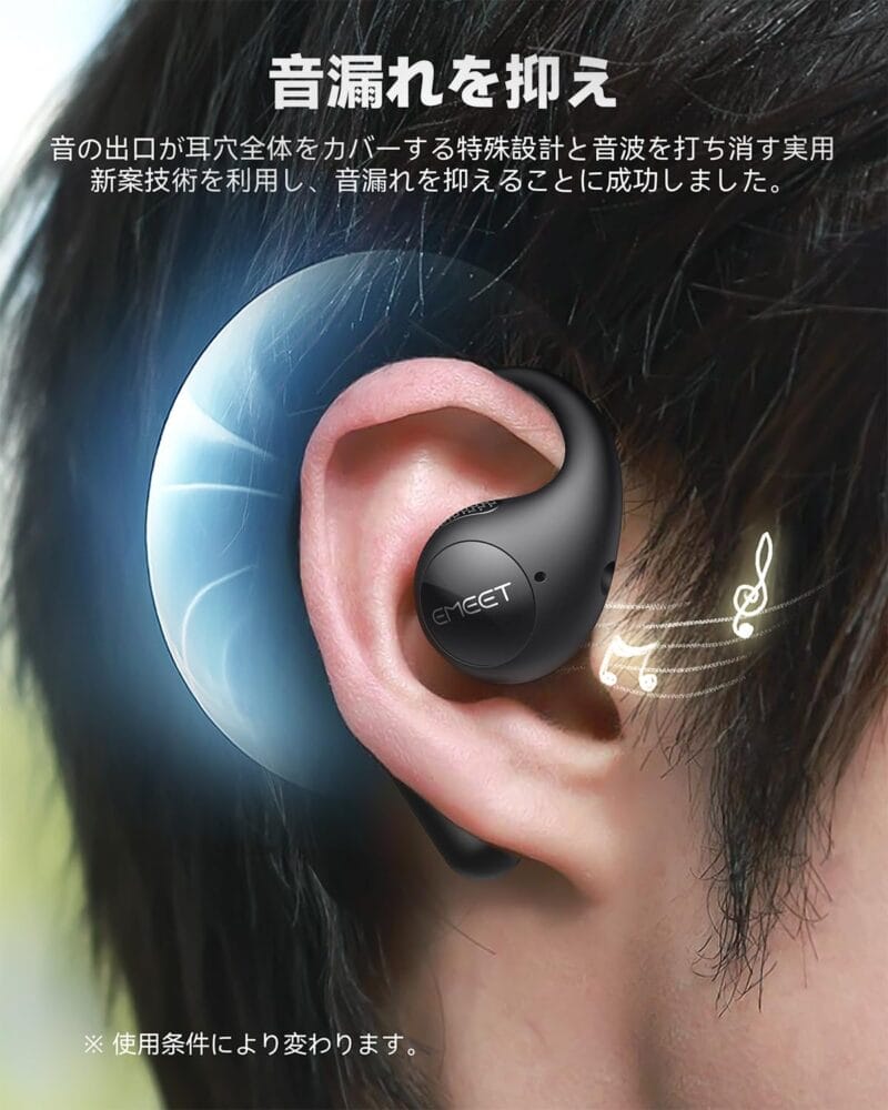 しかし『EMEET AirFlow』の場合は、そもそも耳の穴を塞がずに音楽を聴くことができるため、汗に関わるストレスはほぼゼロになった。