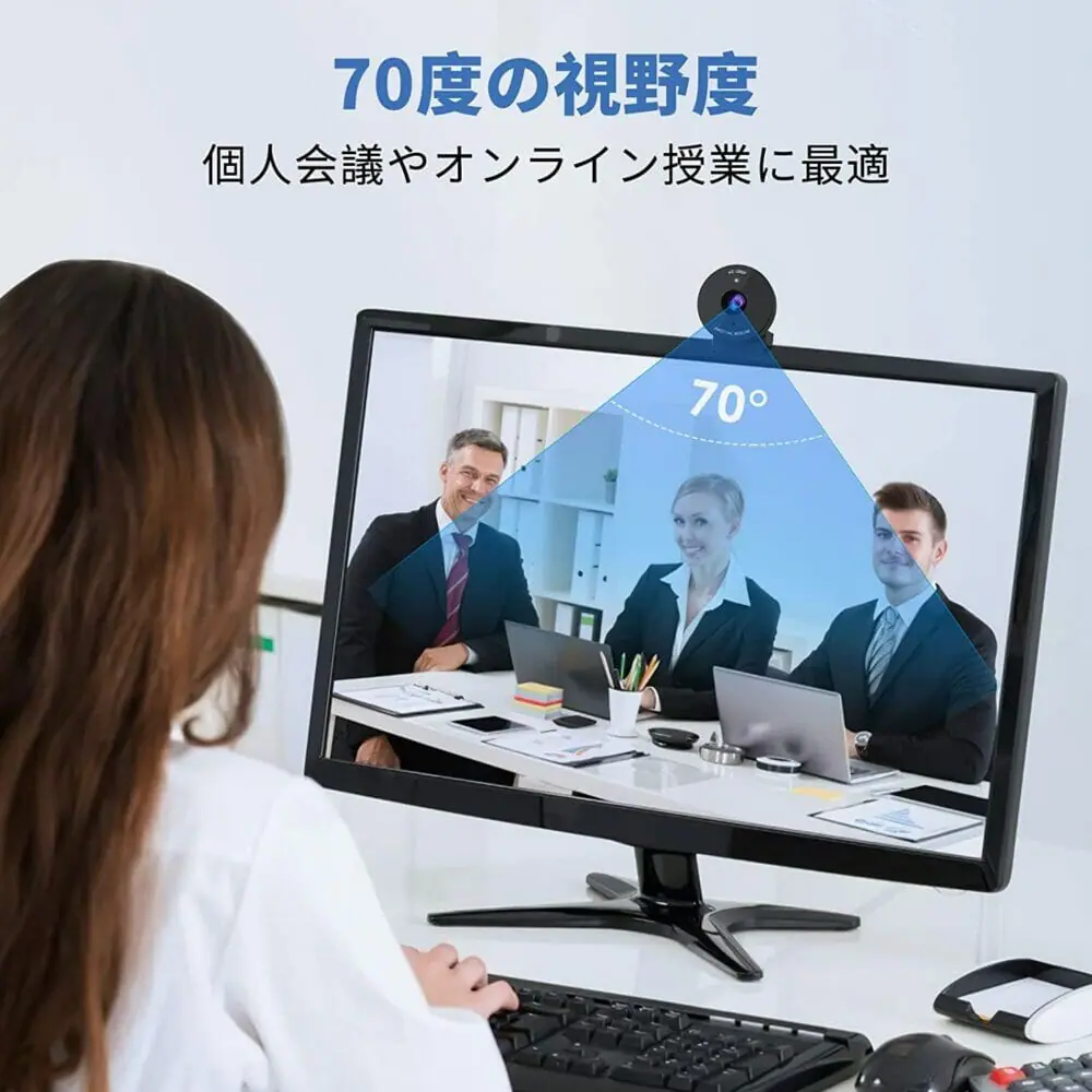 視野角は70度に対応しており、多人数の参加するウェブ会議でも対応できるでしょう。