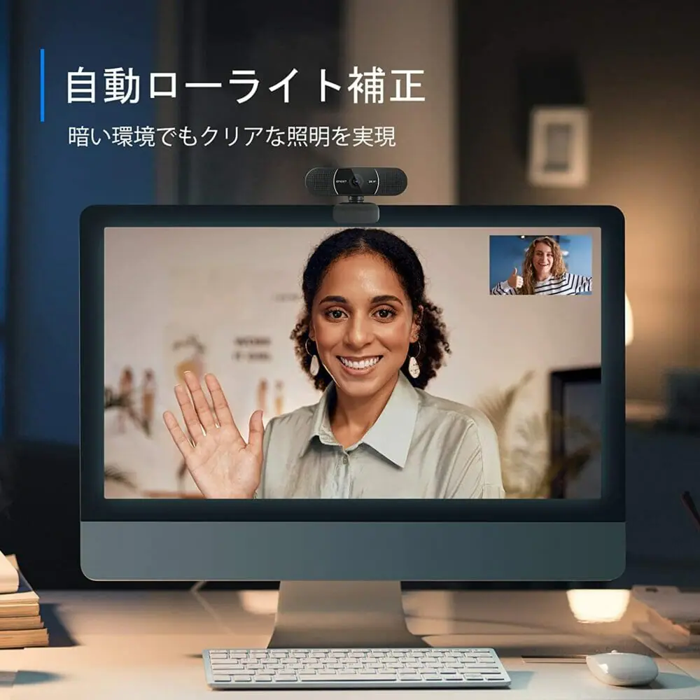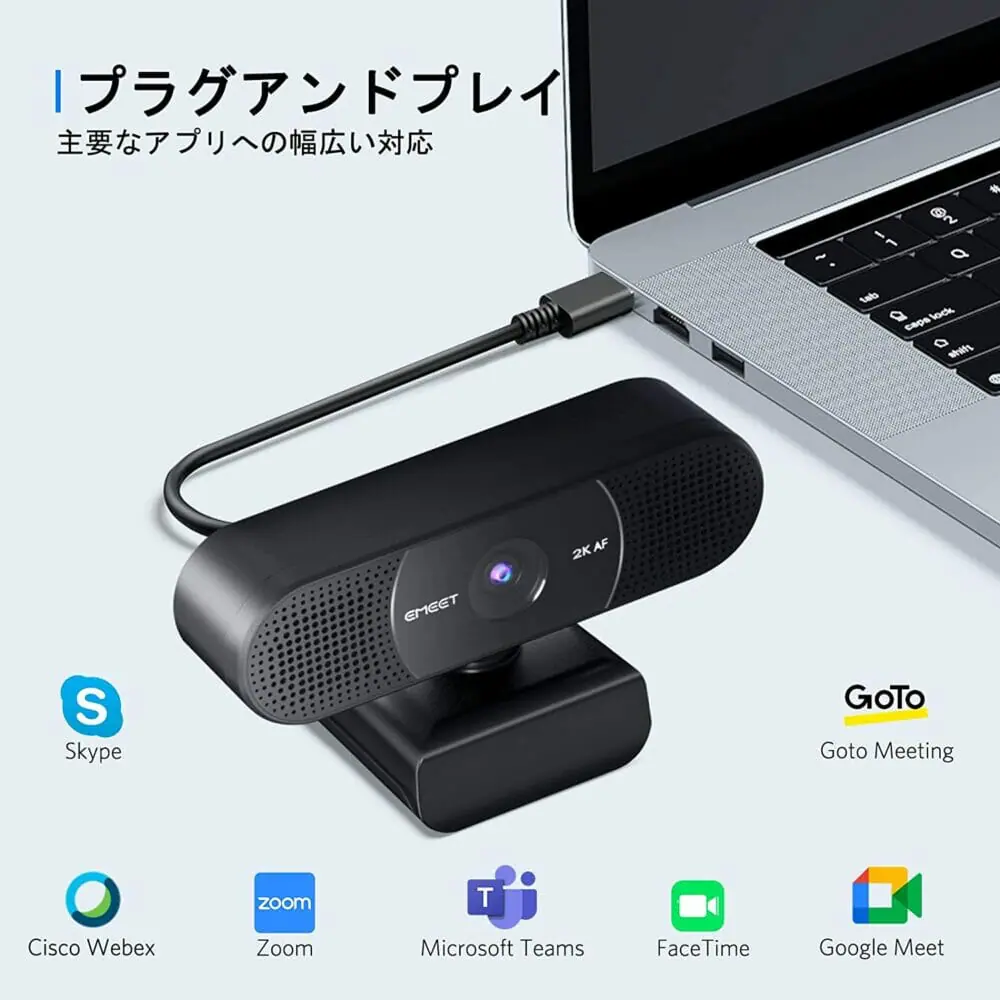 2K・30fps対応の高性能ウェブカメラであり、美しく滑らかな映像を相手側に届けることが可能。デュアルマイクを内蔵しているため、これ1台でウェブ会議やオンライン授業の環境を整えることが出来るモデルとなっている。