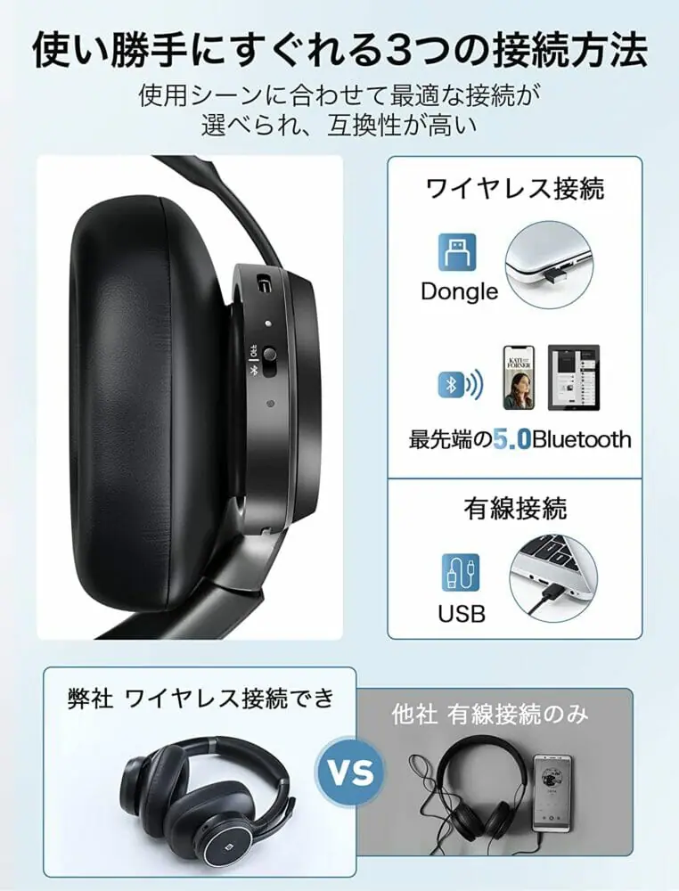 そして接続方法には3種類用意されており、場面や用途に応じて有線・無線を切り替えることが出来ます。