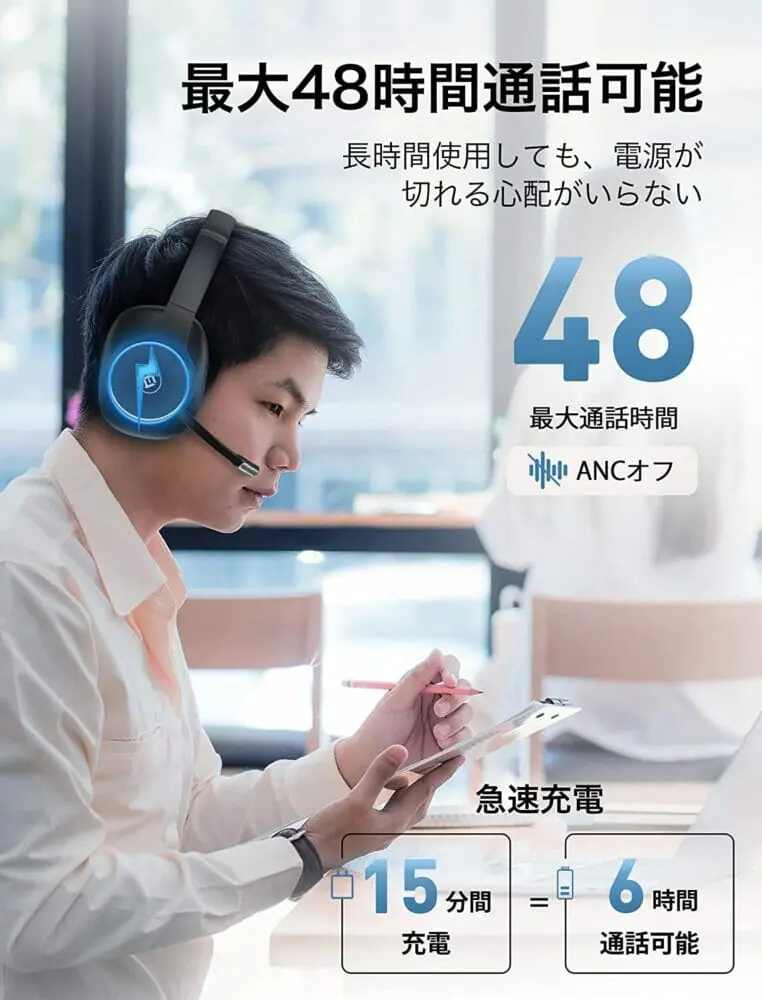 そして内部には最大48時間の通話が可能なバッテリーが内蔵されており、約15分の急速充電で6時間のバッテリーが回復するため、非常に利便性に優れた設計となっています。