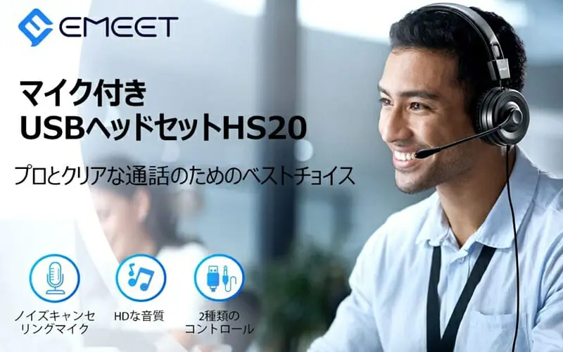 - 商品名:EMEET マイク付き USB ヘッドセット HS20