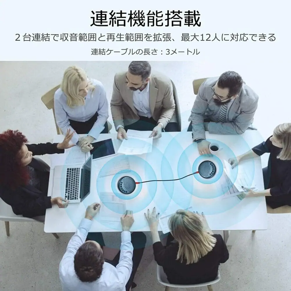 そして同製品を2台連結することで、最大12人までが参加する多人数会議にも対応可能となる。