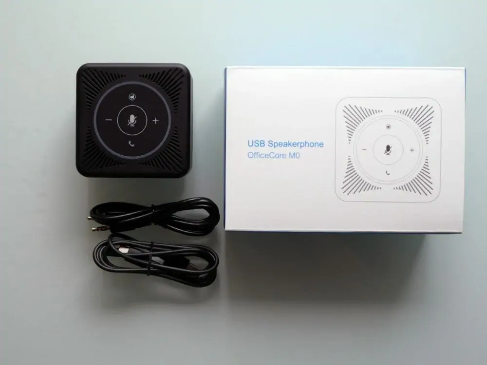Office Core M0は有線タイプのスピーカーフォンなので、基本は自宅PCに接続して据え置き利用がおすすめですが、持ち歩く場合でも本体が小型で配線はケーブル1本で済みますので、モバイルでもまったく問題なく取り扱えるガジェットではないかと思います。