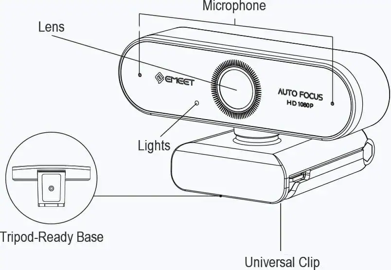 eMeet NOVA WEBカメラは4層光学レンズ搭載で室内などの暗所に強く、画素数は200万画素、解像度は1920p×1080p CMOSセンサーを搭載で、広角は驚きの78°、クリアで滑らか、広い視野角の撮影が可能です。