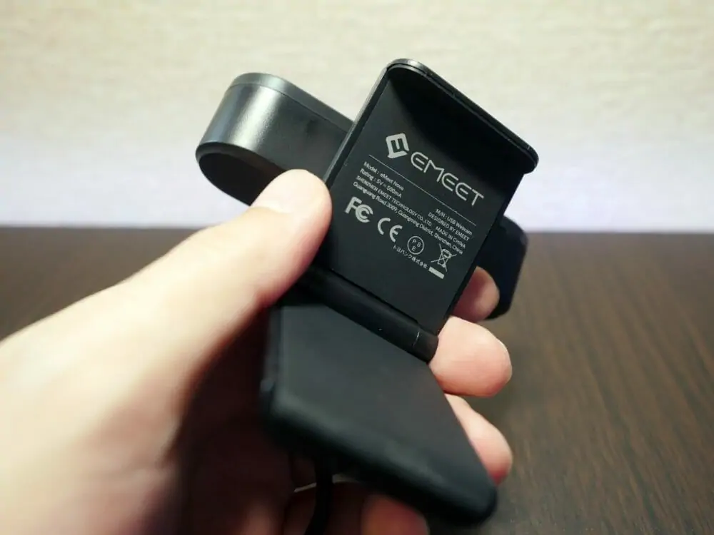 eMeet NOVA本体は樹脂製で、全面のカメラ部はアクリルで覆われています。カメラ部は360°、スタンドは180°可動して適切な撮影ポジションの設置が可能です。