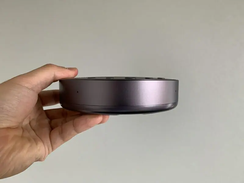 デザインはシンプルでスタイリッシュな一方、金属製の筐体には高級感があり、デスク上に常時設置しておくマイクスピーカーとしてはうってつけの一品だ。