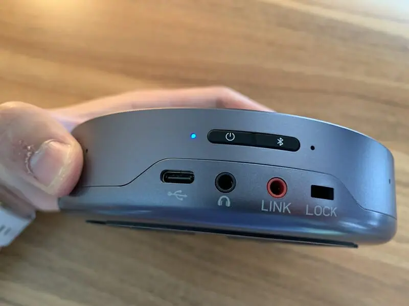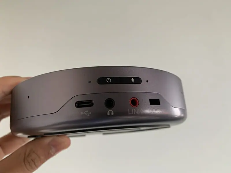 ▼上部側面には電源ボタン、Bluetoothボタン、Type-Cポート、3.5mmオーディオジャック、LINKポート、盗難防止用ロック穴が用意されている。