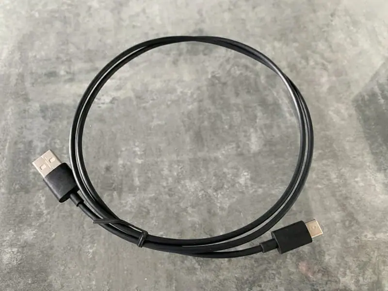 ▼給電&有線接続時に用いるUSB Type-Cケーブルが付属している。