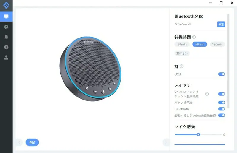 利用にあたり必ずしもインストールする必要はないが、本ソフトウェアを使用することで、マイクスピーカーの各種パラメータを調節することが可能だ。
