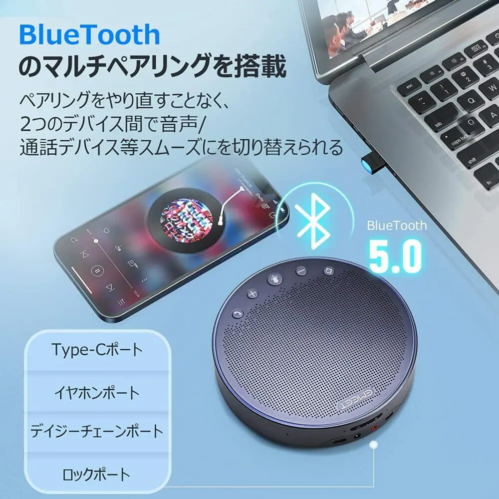 本製品はUSB Type-Cケーブルを用いた有線接続、およびBluetooth 5.3を利用したワイヤレス接続に対応しており、様々な会議シーンに簡単に対応できる。ドライバのインストールは不要で、プラグアンドプレイで簡単に使用することが可能だ。また、ZoomやMicrosoft Teams、Skype、Slack、Webexなどの主要な会議プラットフォームに対応しているため、どのような状況でもすぐに会議を開始できる。
