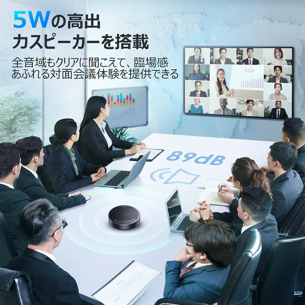 EMEET Luna Plusスピーカーフォンには8つのマイクが搭載されており、360°全方位の音のを漏らさず収音し、一人一人の声を強調して相手に届けることができる。また5Wの高品質スピーカーも搭載されており、部屋中に音を均等に広げ、すべての発言内容をはっきり聞き取ることが可能となっている。