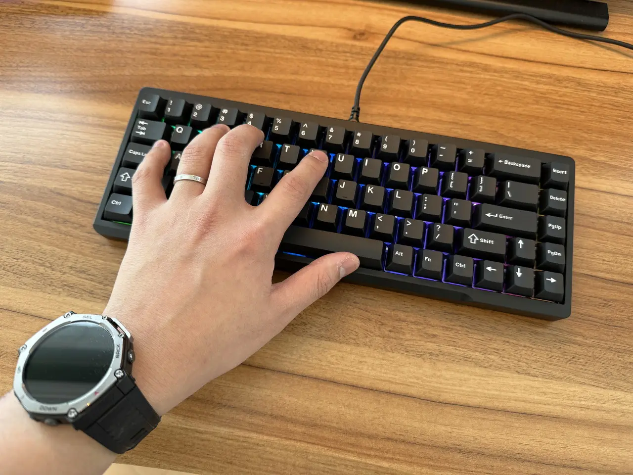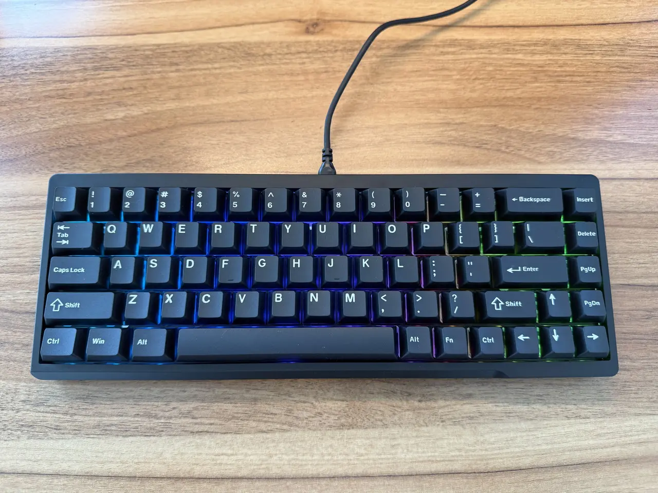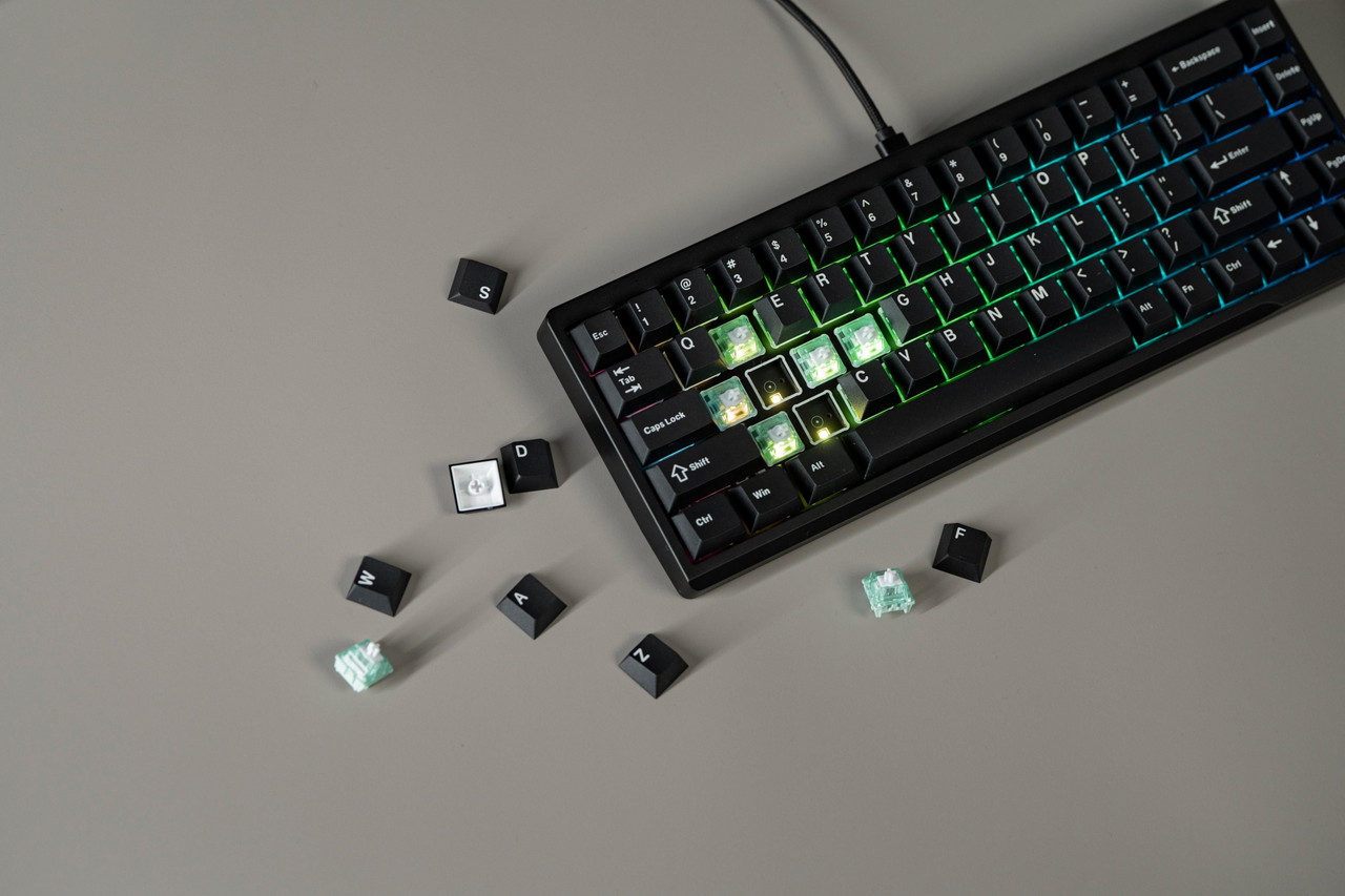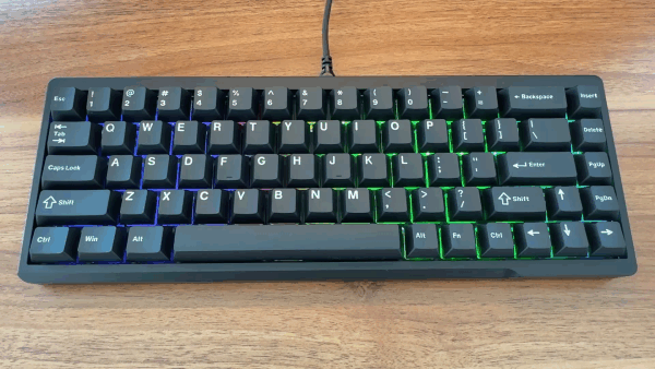 68キーを備えた、65% ANSI US 配列のキーボードだ。有線(Type-C)接続のみをサポート。