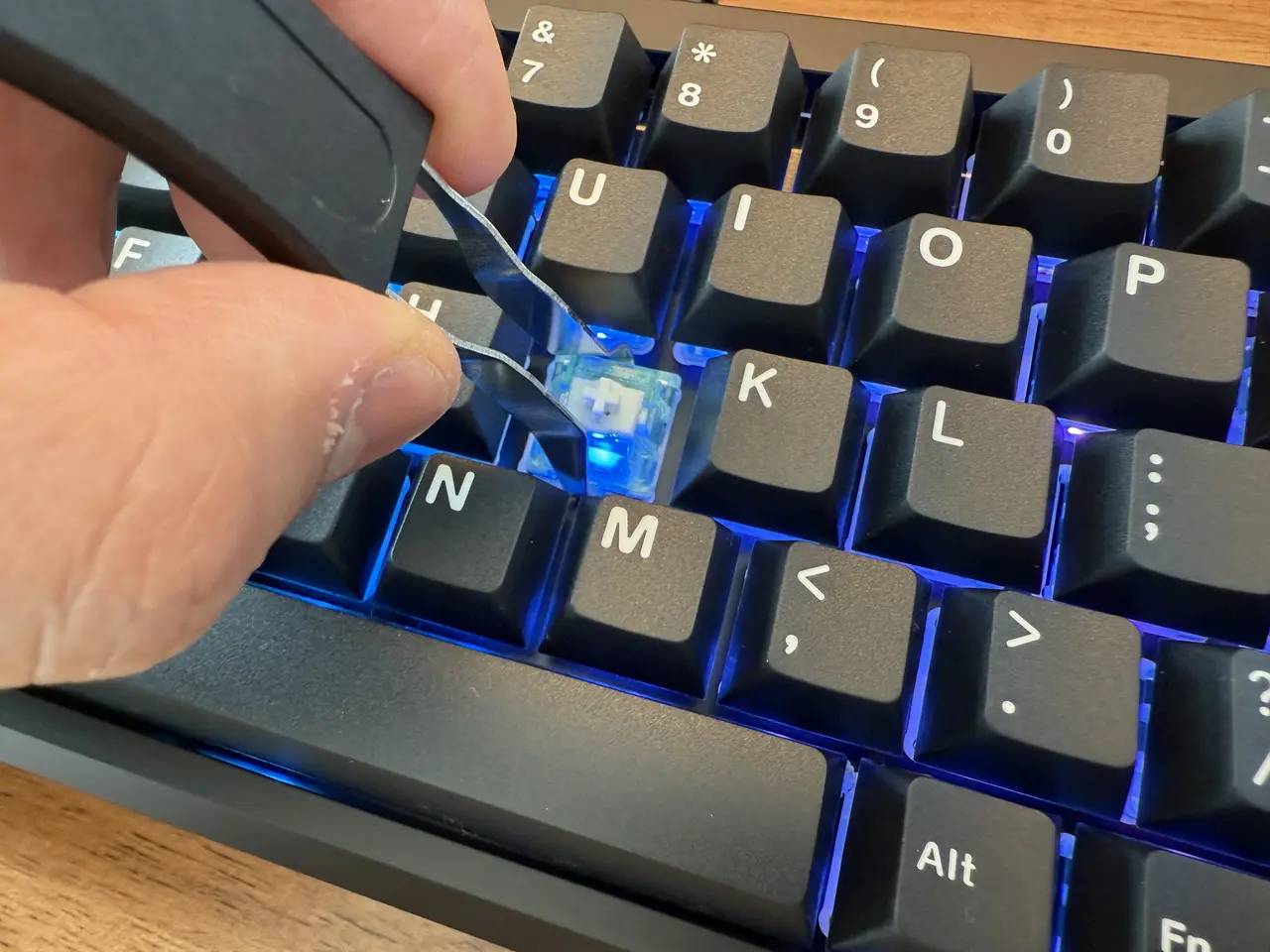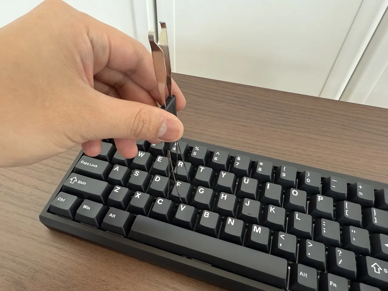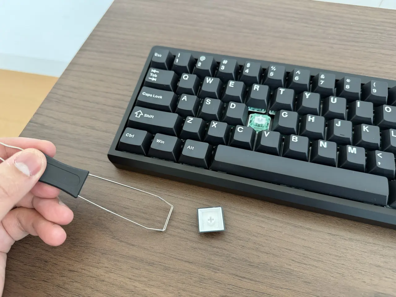 ▼キーキャッププーラーを使用して、キーキャップやスイッチを簡単に取り外せる。