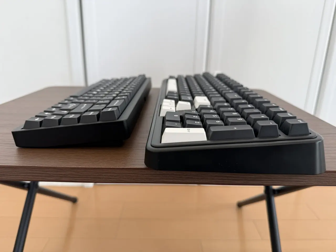 ▼以前レビューした、同ブランドの「Epomaker TH99」(画像上)と本製品(画像下)を並べた様子。