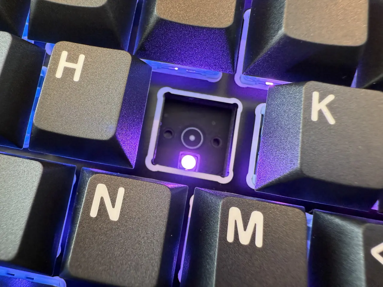 ▼スイッチの下には、RGBライトが仕込まれている(電源を入れると点灯)。