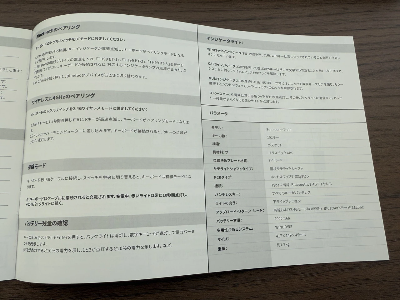 今回紹介した『Epomaker TH99』について、特徴をまとめると以下の通りだ。