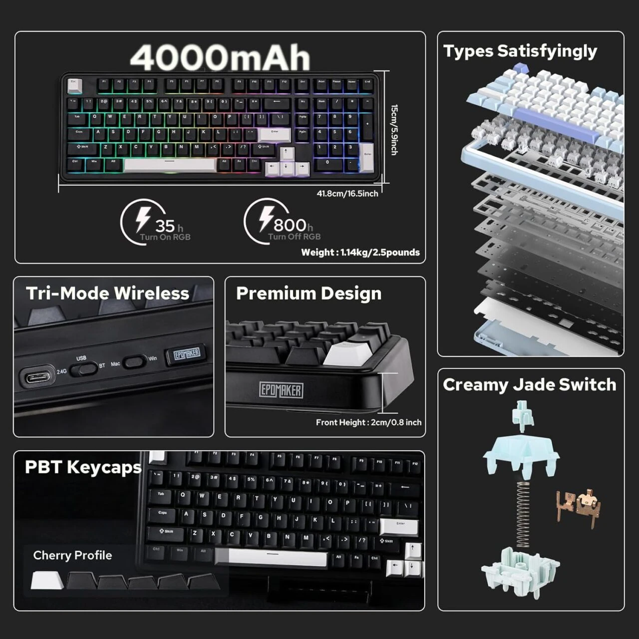 今回紹介する『Epomaker TH99』は、1800コンパクトレイアウトと高機能性を兼ね備えたメカニカルキーボードだ。