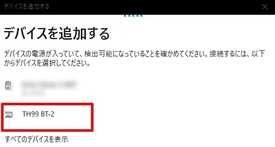 後はデバイス側で「TH99 BT-2」を選択することで、Bluetooth接続が完了する。