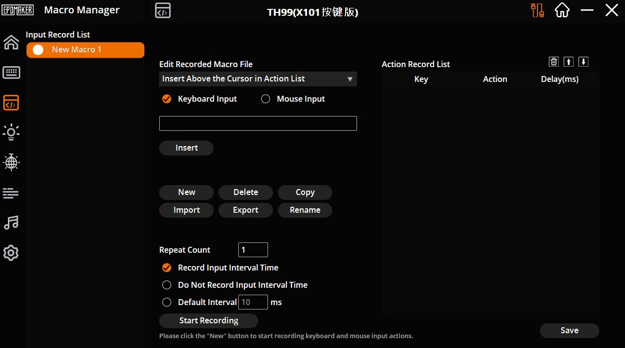 ▼詳細なマクロ設定が可能。遅延時間(ディレイ)の設定やループも調整できる。