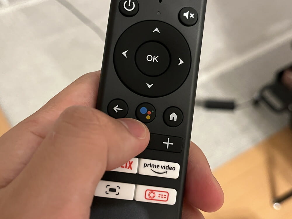 ▼リモコンには一般的なインターフェースのほか、Googleアシスタントボタン、ネットフリックスボタン、Amazon Primeビデオボタンなどが用意されている。