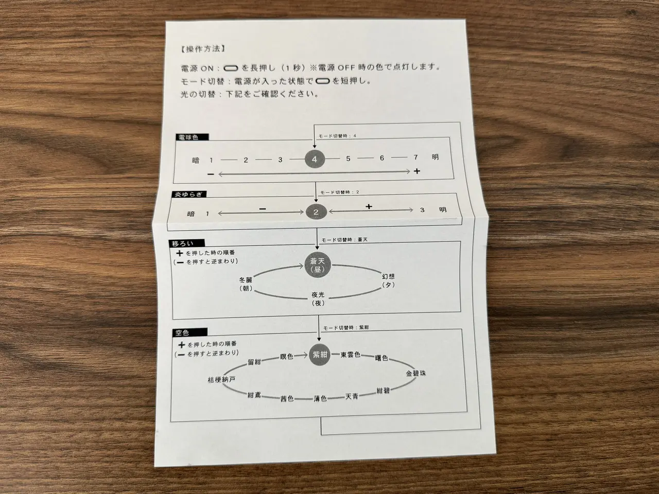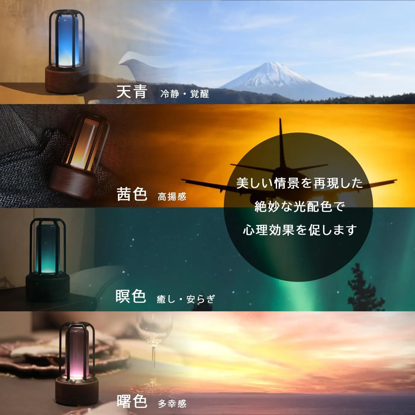 自身の気分やシーンに応じて、多彩な点灯パターンから好みのものを選択でき、眺めているだけで安心感を与えてくれる。特に光に動きのあるとくに「炎のゆらぎ」と「空色」モードは、どこかノスタルジックな感情を感じさせてくれる魅力があり、生活スペースの片隅に彩りを加えることができる。