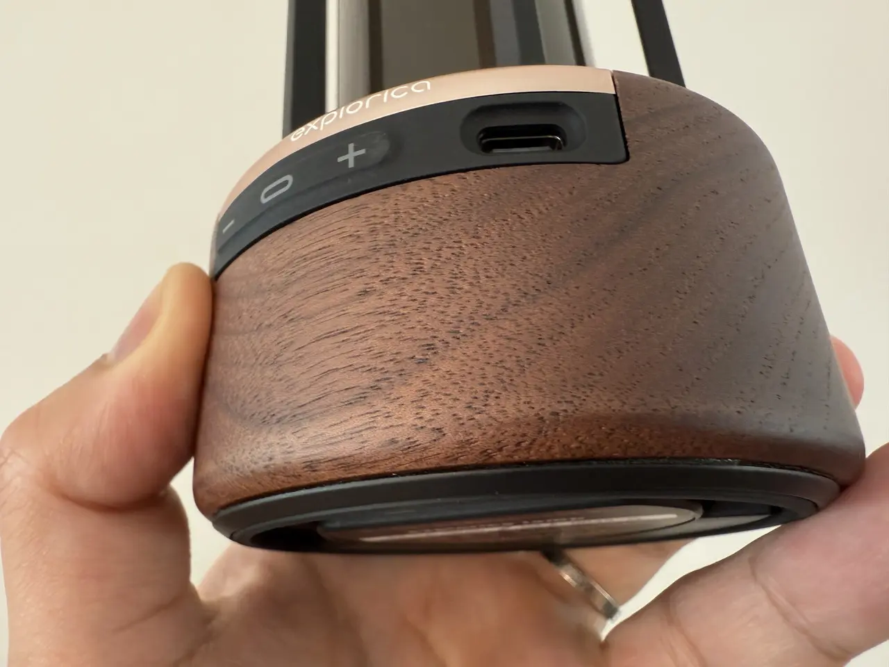 ▼本体下部には天然木の素材を採用しており、表面は滑らかに処理されており、手触りは非常に良好。デスクライトの中でもひと味違う "本物感" を発している。