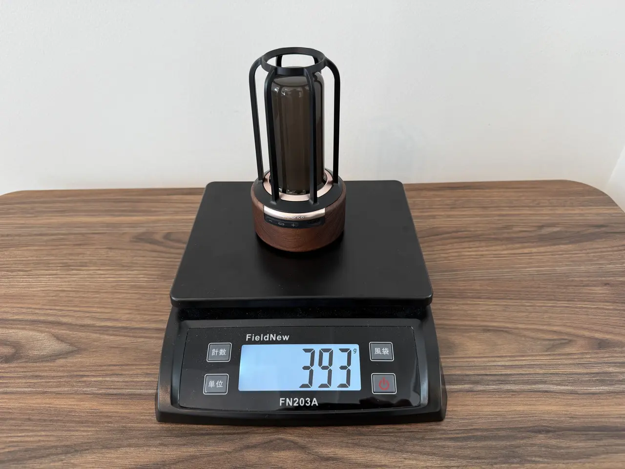 このように、高級感あふれるモダンなデザインのLEDランプに仕上がっている。物理ボタンや端子などのインターフェースは最小限に抑えられ、機能美が凝縮された設計となっている。またコンパクトかつ軽量ながら、適度な重みがあり、しっかりとした存在感を感じられる。