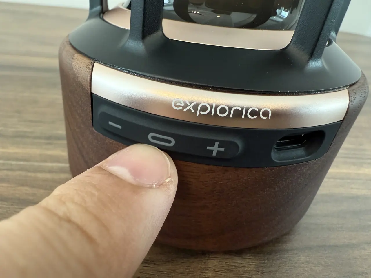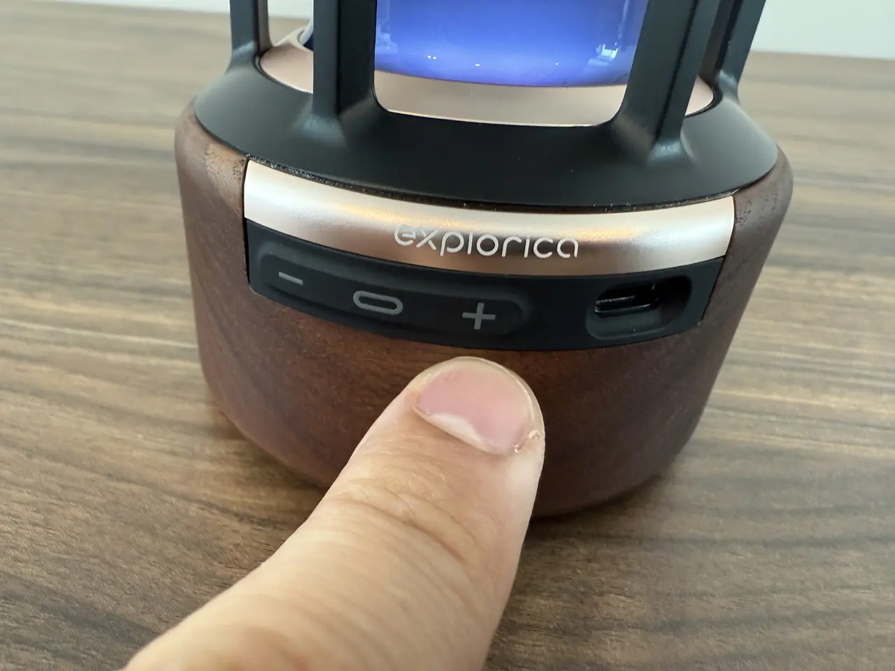 LED光源とスモークレンズの絶妙なバランスにより、explorica lampはこれまでにない柔らかな光を表現している。眩しさが抑えられており、明るさを最大まで上げた場合でも、光を直接見ても目の痛みを感じることはない。空間をそっと照らすやさしい存在として機能してくれる。
