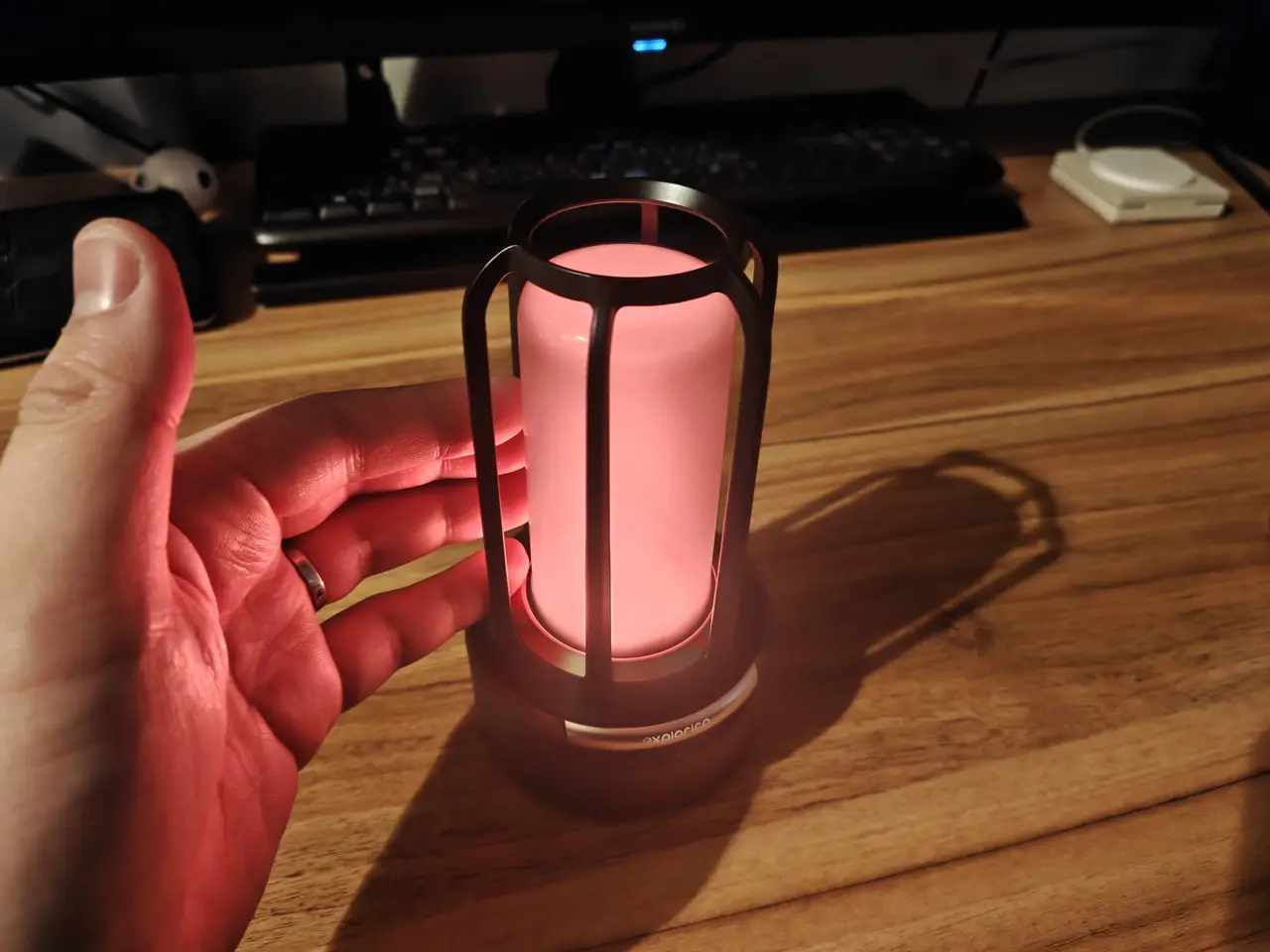 2,700K相当の光りで柔らかく照らし出すモードであり、Maxは食卓に、Midは読書灯に、Minはベッドサイドの常備灯に適している。