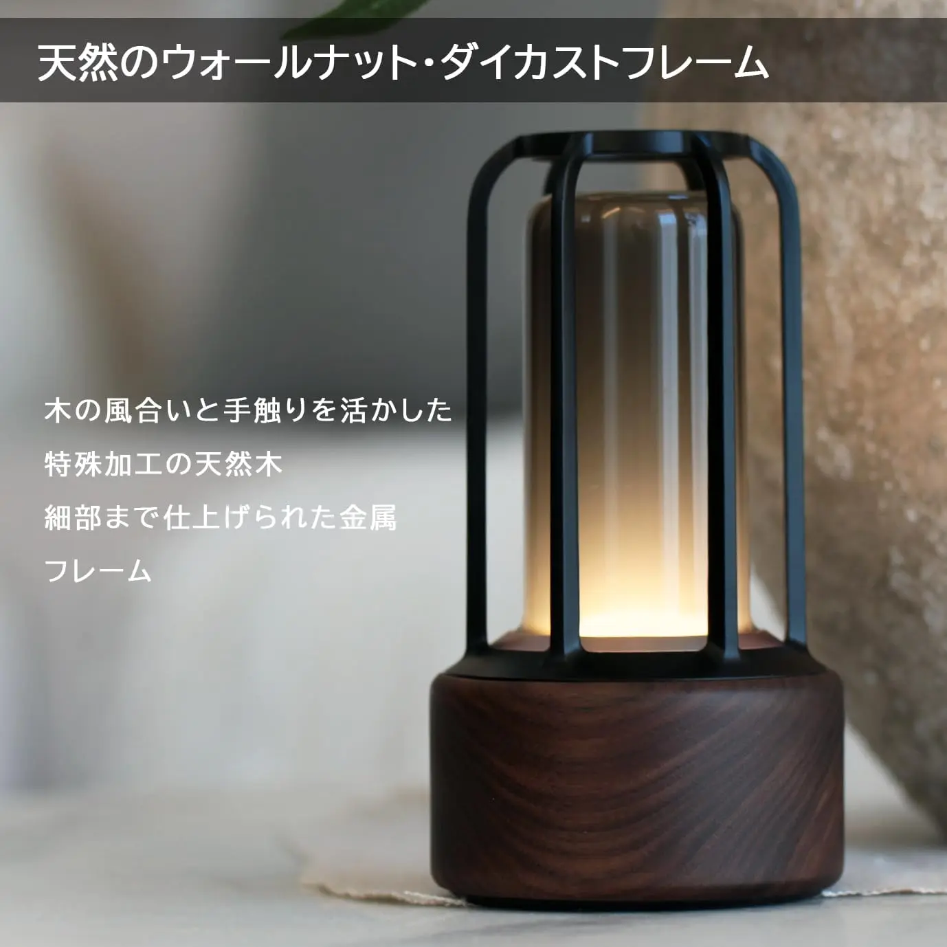 天然木を使用した本体と、細かいディティールを施したフレームで構成されたモダンデザインのLEDランプであり、LED光源とスモークレンズの絶妙なバランスにより、様々な点灯パターンを楽しめる。