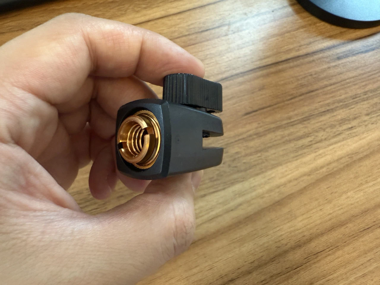 ▼ピボットマウント(アダプターネジ付き)が付属。マイクを別売りのマウントに取り付けることが可能。