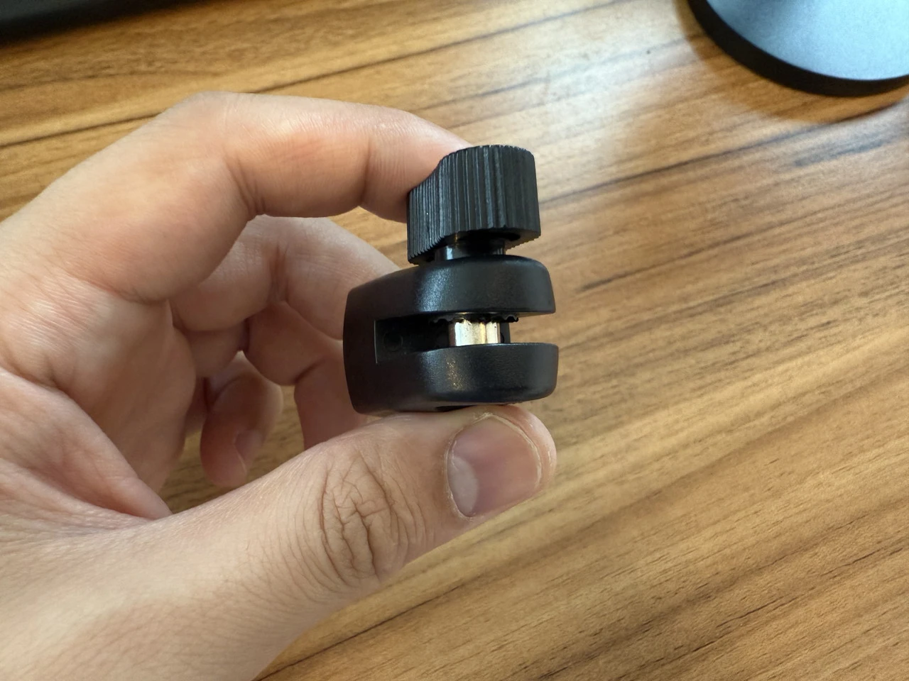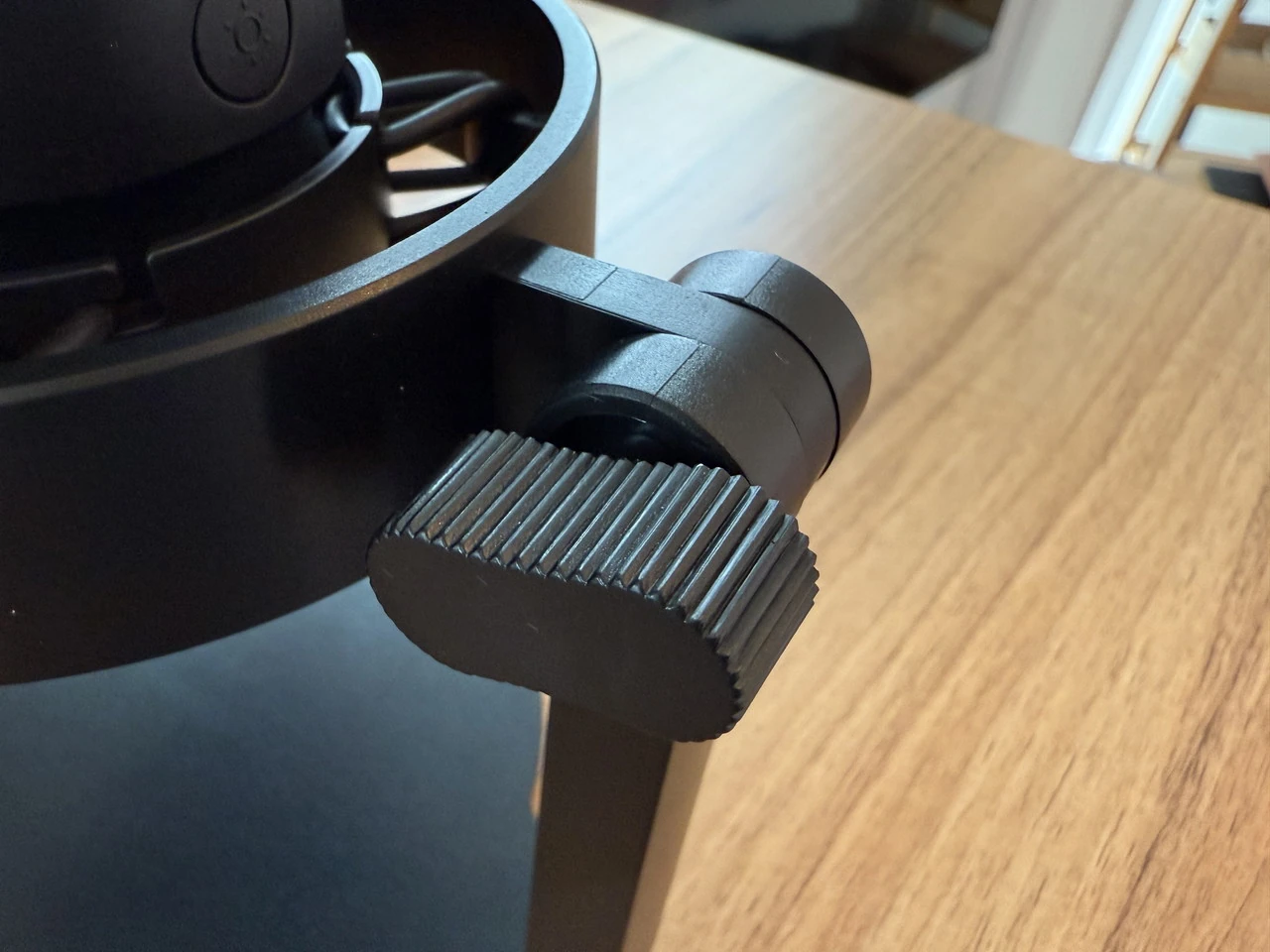 背面のつまみを回すことで、マイクの角度を調節できる。