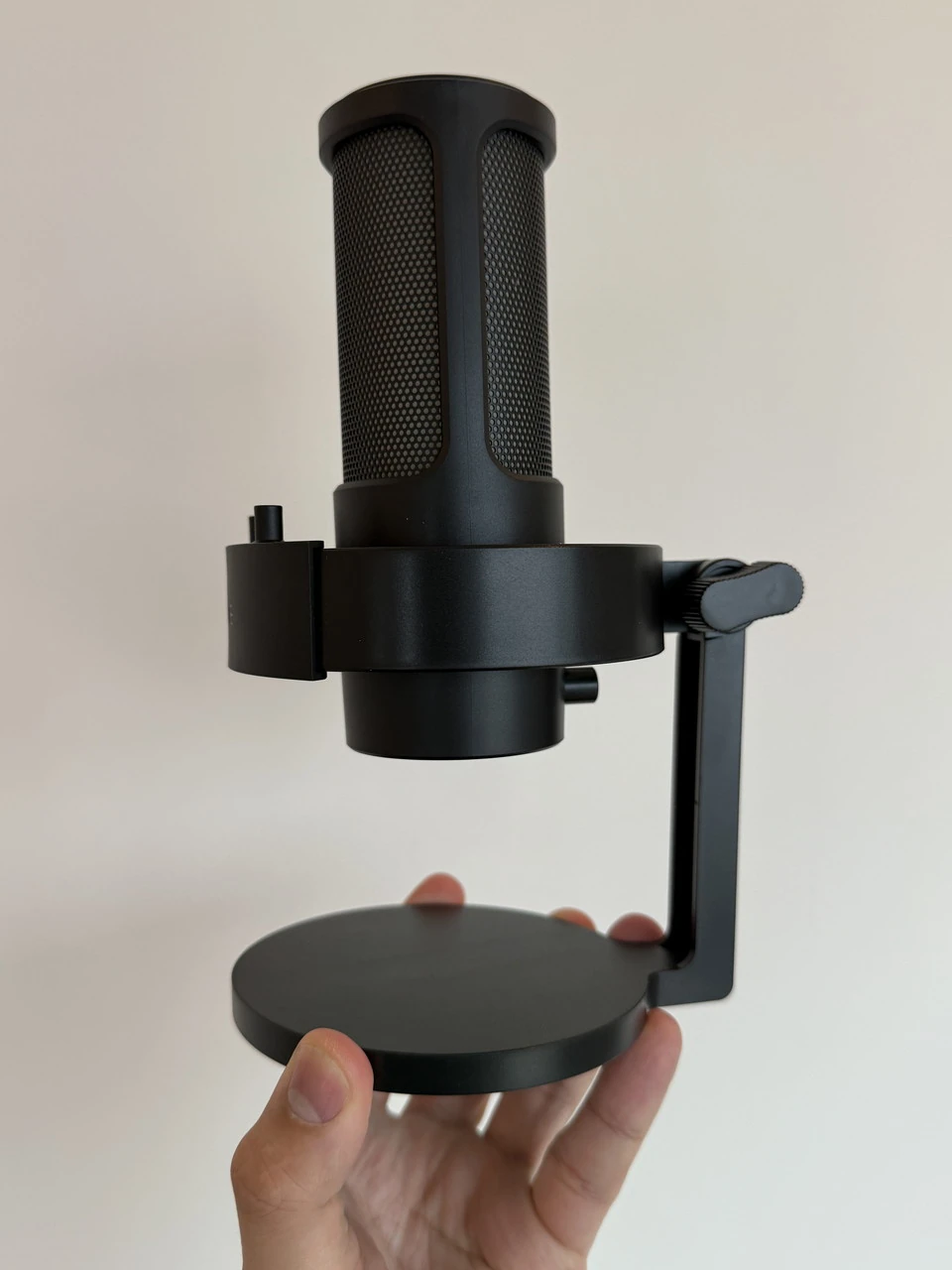 マイク自体は非常に軽く、片手で持ってラクラク移動できる。