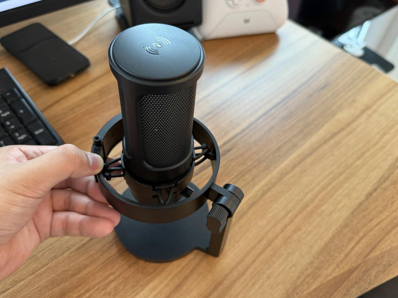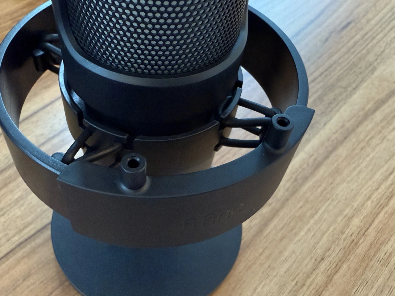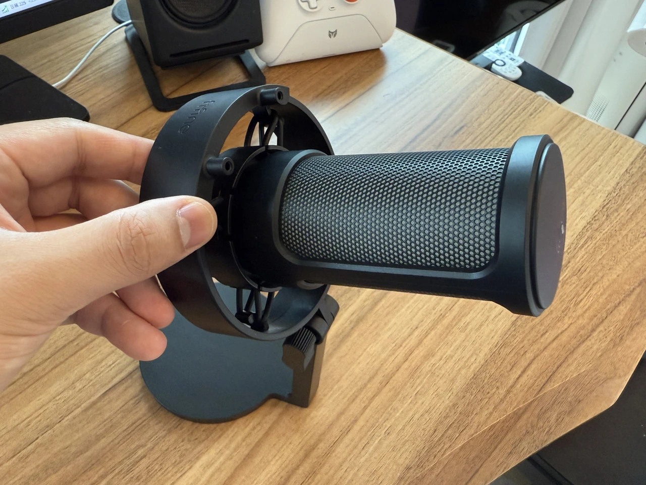 弾力性のあるゴムバンドでショックマウントが固定されており、全方向からの振動を吸収することで、録音へのノイズの入り込みも最小限に抑えられている。周囲のノイズも効果的に低減できるため、ゲーミング時の配信や、オンライン会議、フレンドとの通話など、幅広い場面で質の高い音声収録を実現できるだろう。