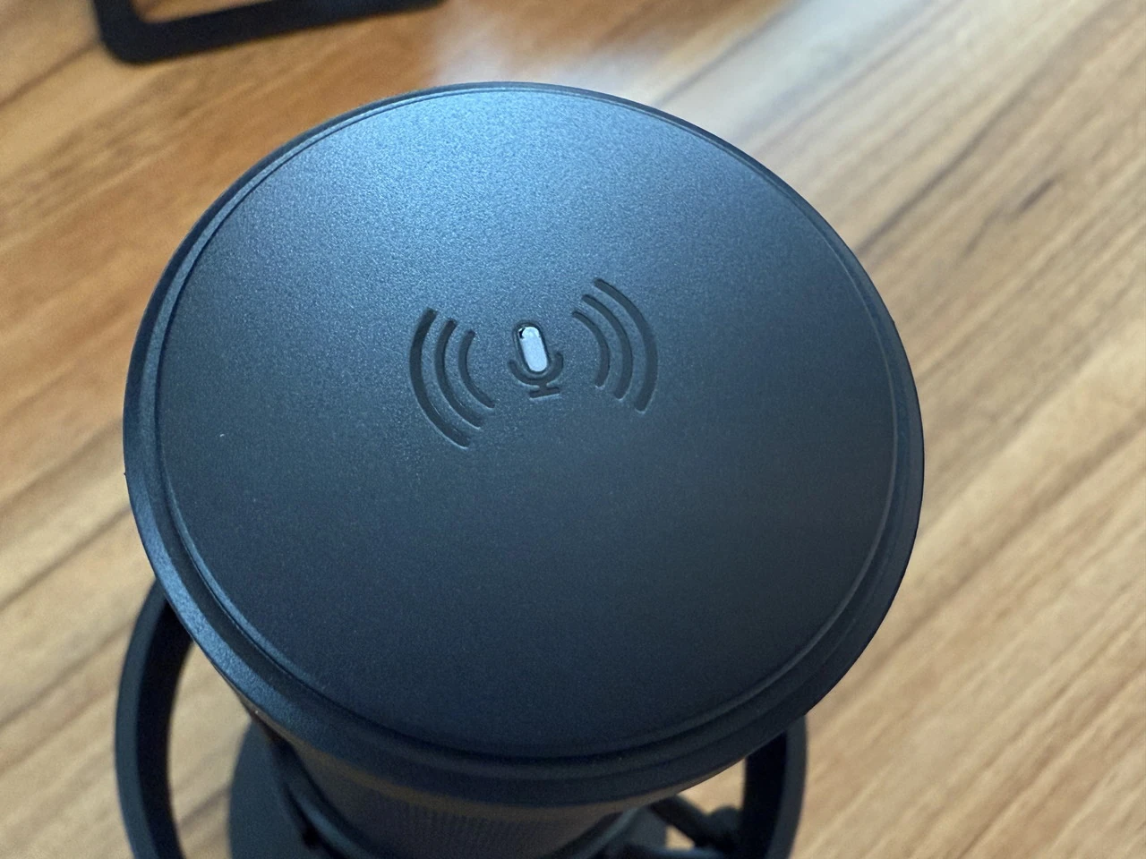 ▼マイク上部にはミュートボタンが用意。タップでミュート状態を瞬時に切り替えられる。