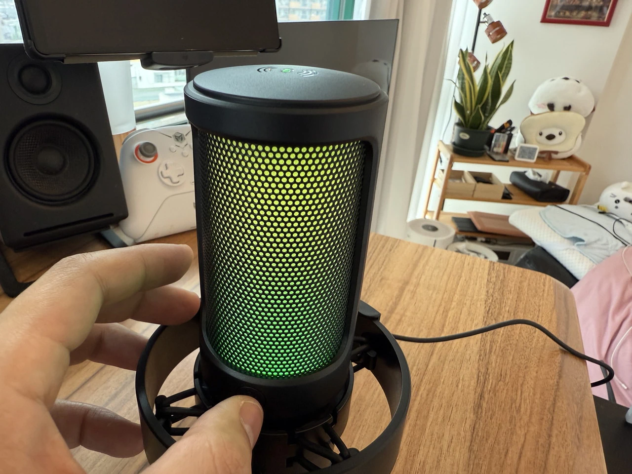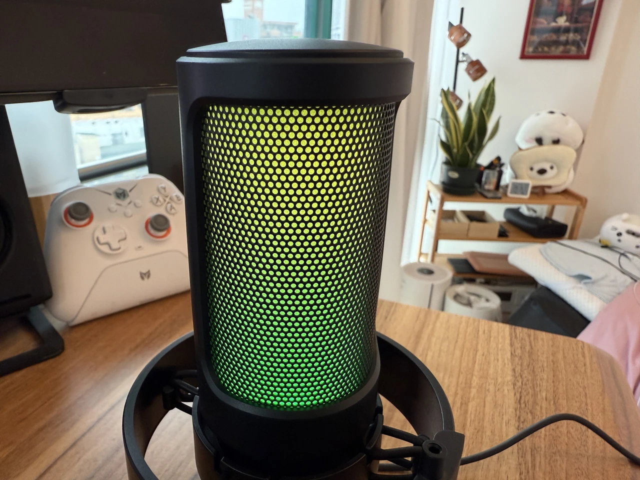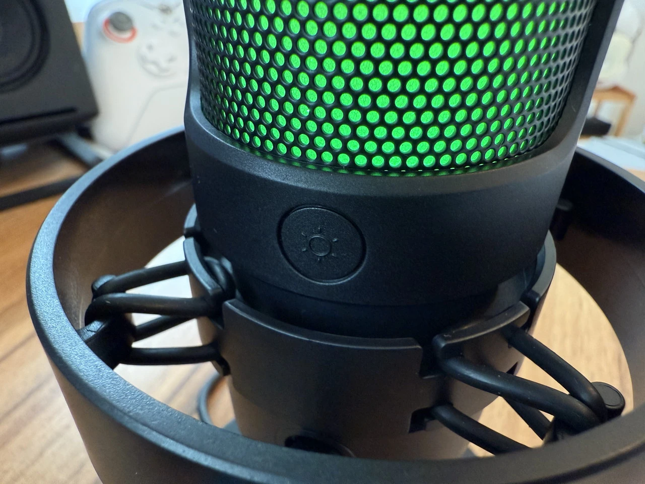 マイク本体にはRGBライトが内蔵されており、ゲーミングデバイスらしいカラフルな点灯パターンを楽しめる。