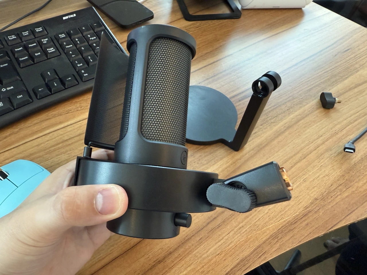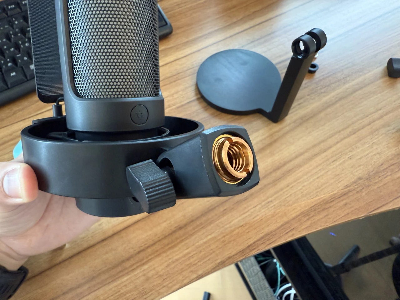 マイクをアームに装着して、デスク上のスペースを節約したい場合にはオススメの設置方法だ。