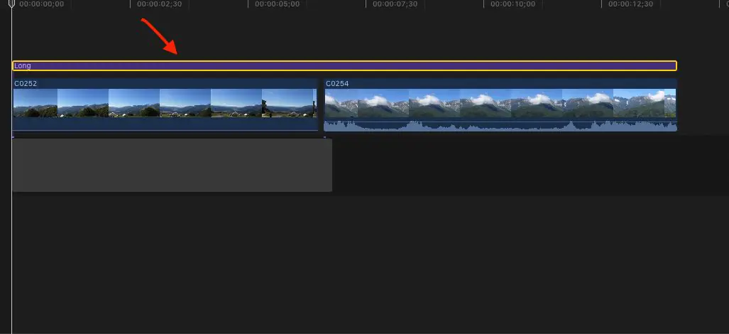 ▼クリップ全体をまたぐようにAdjustment Layerをタイムラインに乗せます。