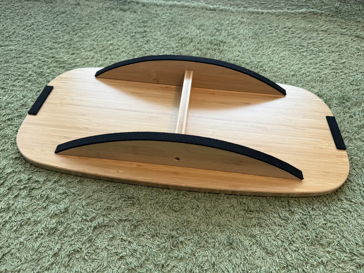 ボード裏面は楕円になっています。保護パッドが楕円部および端に取り付けられており、床面にキズが付くのを防ぎます。
