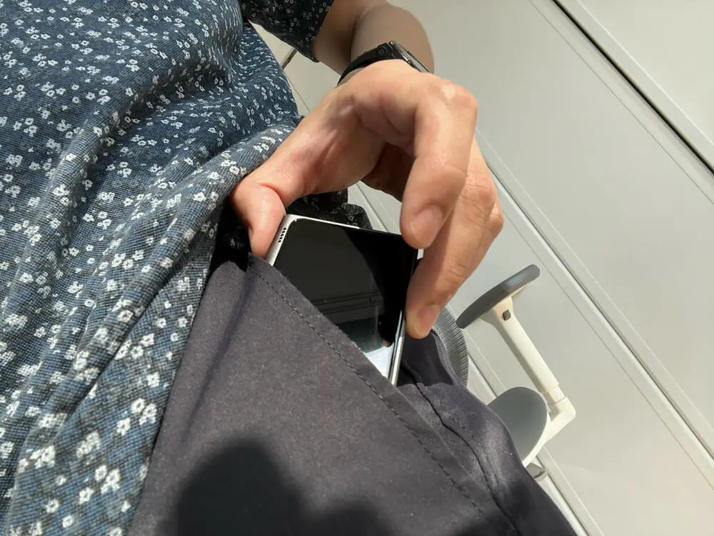 ▼ズボンのポケットに入れても支障なく持ち運べるほどの大きさだ。