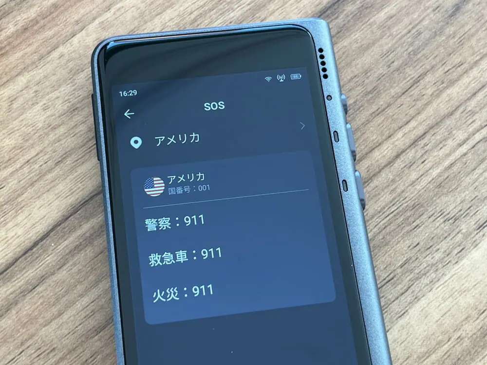 ▼「SOS」では、各国の緊急連絡先を即座に表示できる。海外滞在中、有事に出くわした場合には助かる機能だろう。