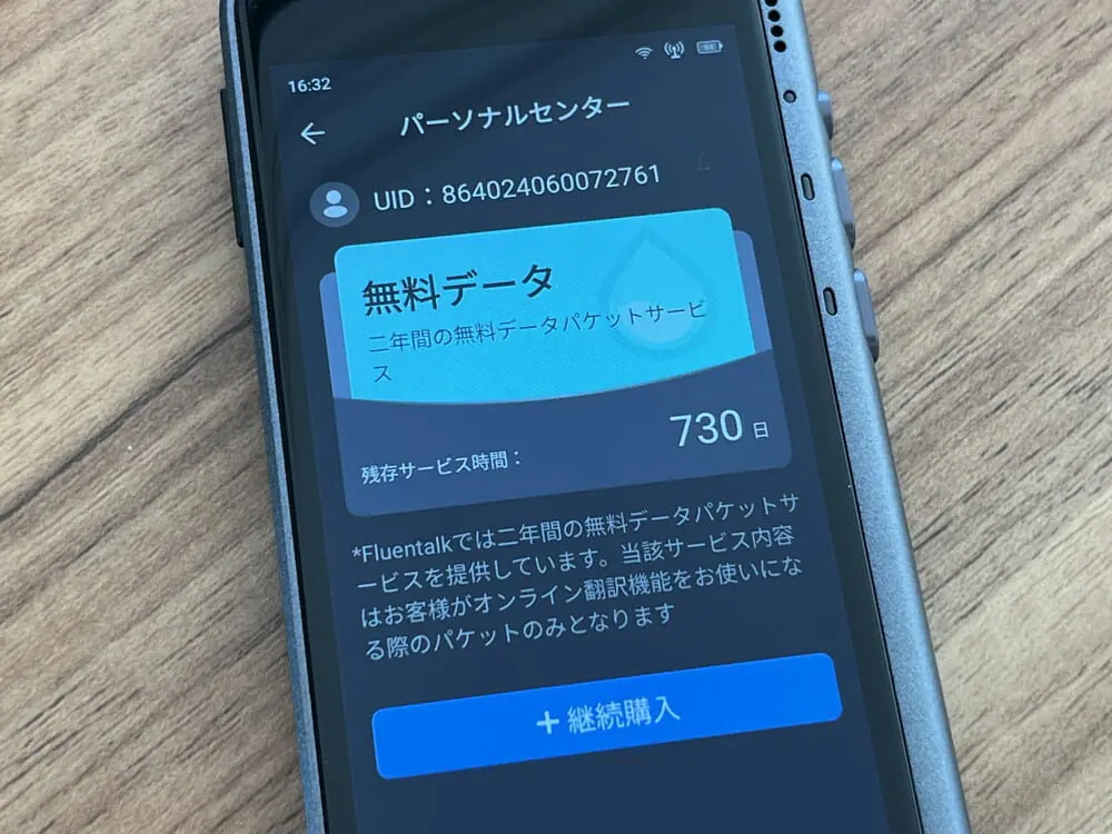 ▼購入時点で、2年(730日)のあいだオンライン翻訳機能を利用できるデータパケットが付与されている。