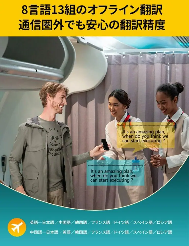 ▼飛行機の中など、通信が制限される環境でも翻訳機能を利用可能。